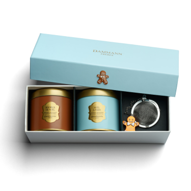Per un Natale all’insegna della golosità, due dei tè più iconici della Maison sono racchiusi in un cofanetto verde brillante, decorato con un medaglione raffigurante un simpatico omino di pan di zenzero. All’interno, due lattine da 40 g: un tè nero e un tè verde. Sarà difficile scegliere tra le due ricette: la prima sprigiona una tazza golosa e deliziosamente fruttata, la seconda rivela note finemente speziate e fruttate.