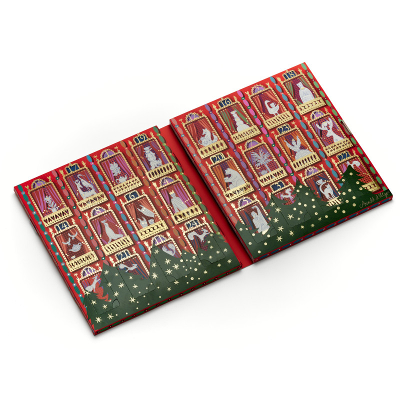 Ogni dettaglio è un invito a rallentare, sognare e lasciarsi sorprendere: giorno dopo giorno, le sue illustrazioni ci accompagnano in un viaggio tra paesaggi innevati e decorazioni fiabesche, racchiudendo tutta la meraviglia dell’attesa natalizia.