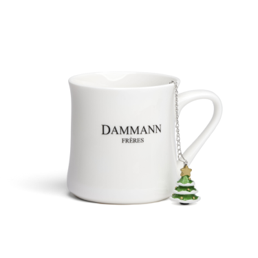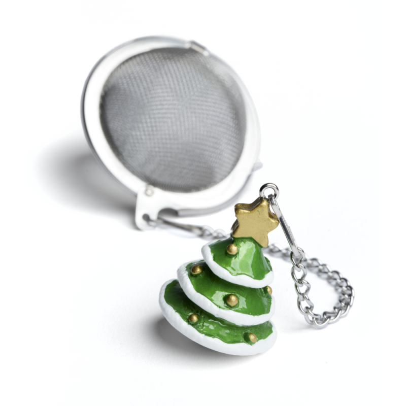 Un originale infusore a sfera, decorato con un alberello di Natale in resina fissato all’estremità della catenella.