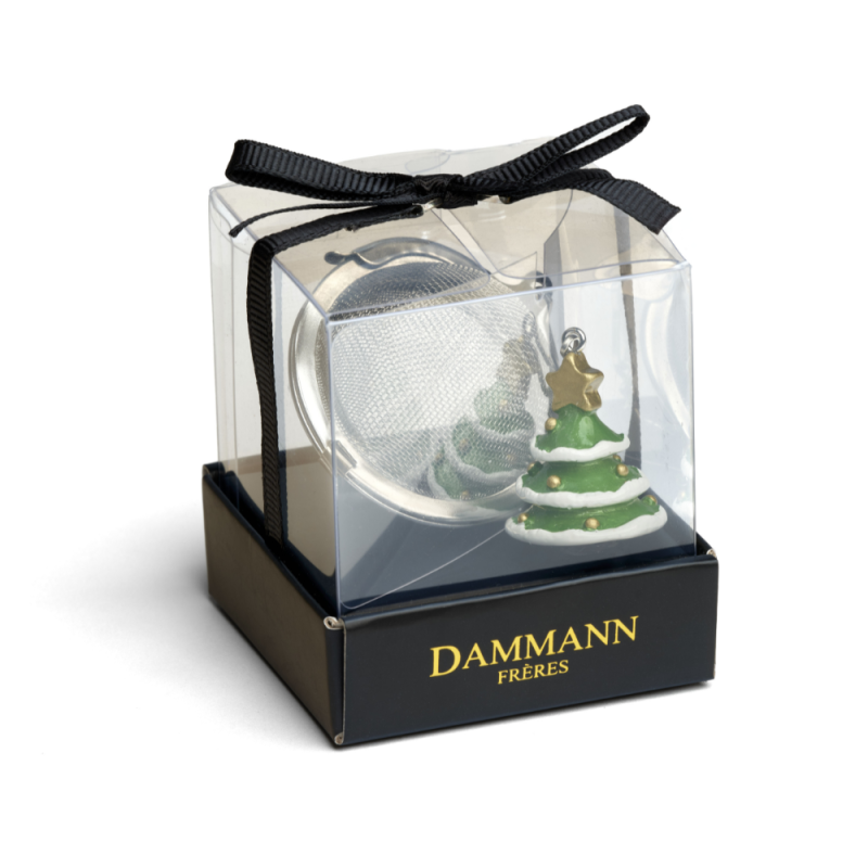Un originale infusore a sfera, decorato con un alberello di Natale in resina fissato all’estremità della catenella.