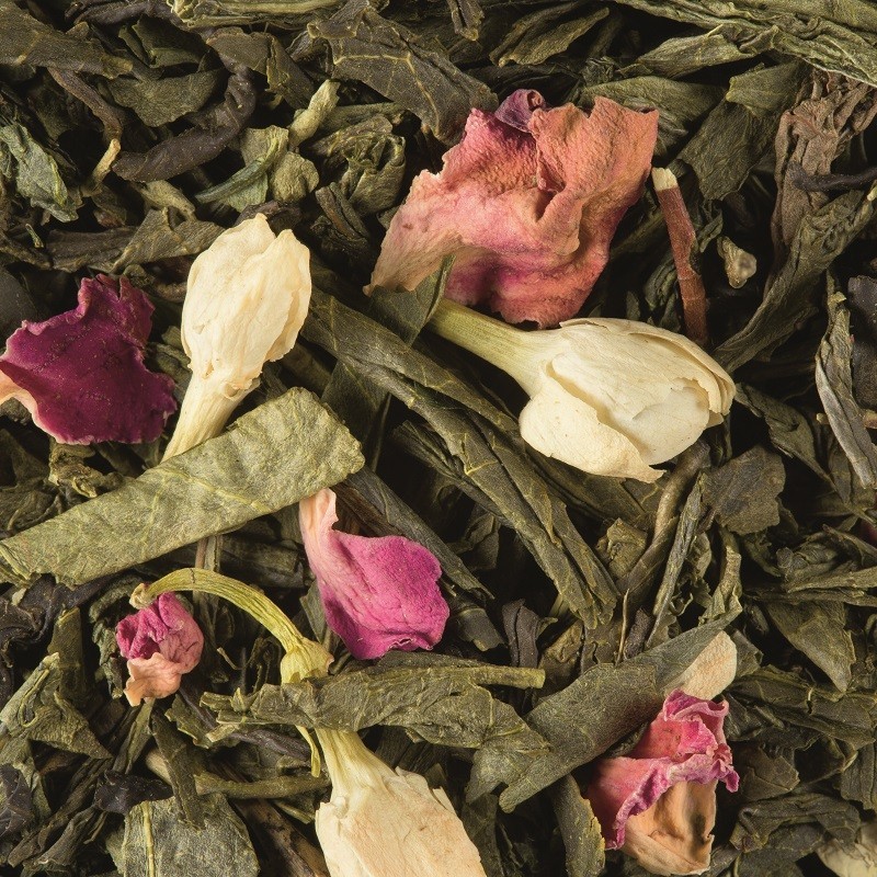 Sottile equilibrio di note fresche, floreali e fruttate per quest'insieme delicatamente profumato da apprezzare per tutto l'arco dell'anno: può essere degustato sia caldo che freddo. Un tè verde molto delicato con gelsomino, petali di fiori, aroma di litchi, pompelmo e rosa.